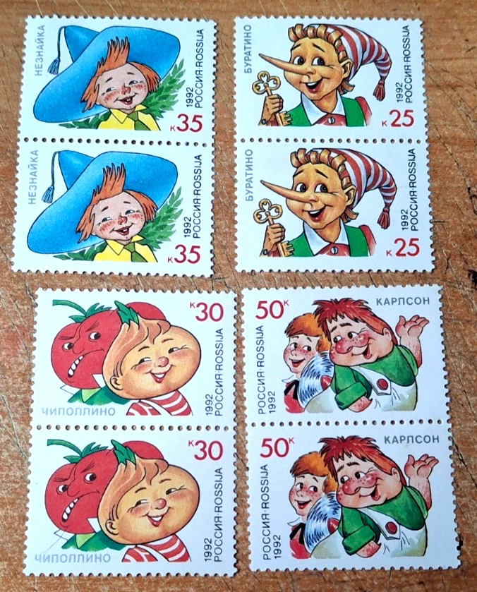 Russia,#6076-79 Characters from Children`s Books full set 1992 MNH vertical pair