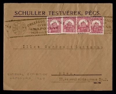 DR WHO 1929 HUNGARY PECS EXPO SLOGAN CANCEL TO AUSTRIA M56645
