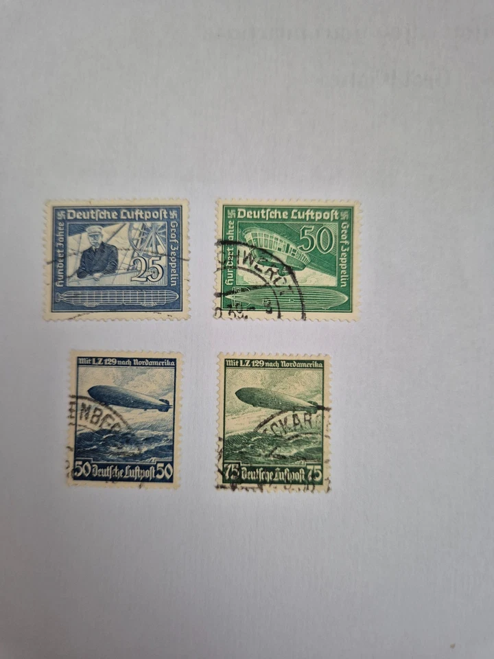 Germany 1938 Zeppelin's 100th Birthday & 1936 Flights- Mi 669/70 & 606/7X - Used