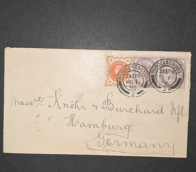 Great Britain 1896 Cover MIDDLEBROUGH to Hamburg Germany Queen Victoria Stamp