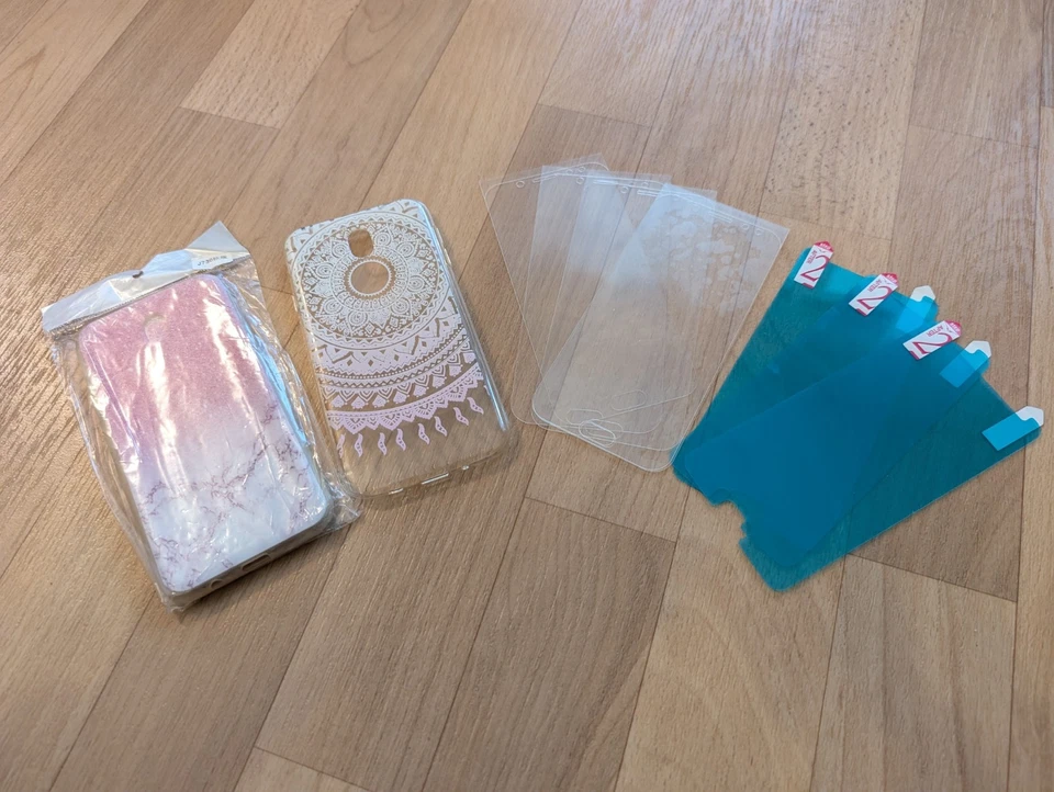 Reste aus einem Displayschutz-Set für das Handy Samsung S22 wie Fotoschutz, ...