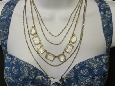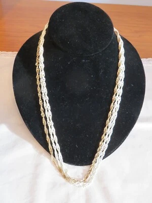 Vintage Gold Tone & White Triple Rope Chain Necklace