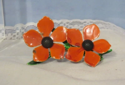 Vintage Orange Flower Brooch