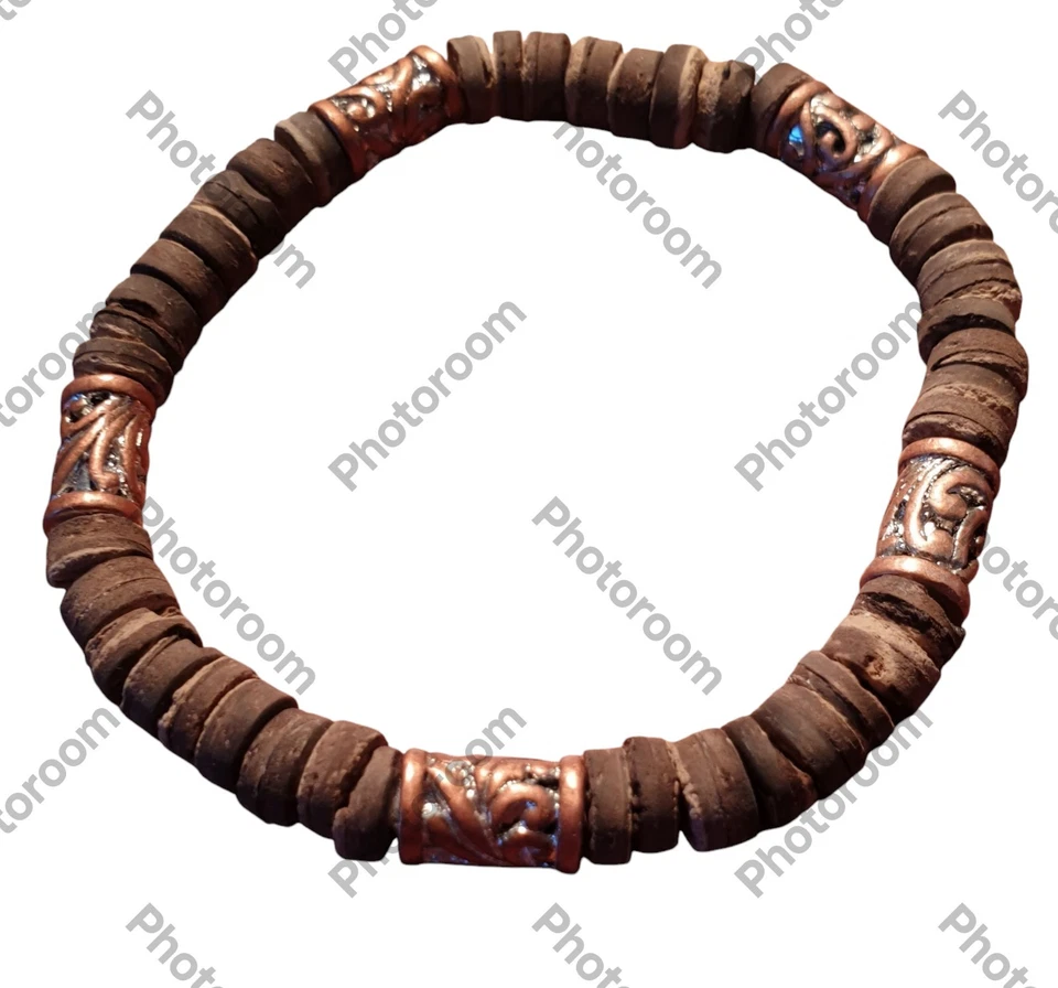 Wooden & Metal Beaded Stretchy Bracelet