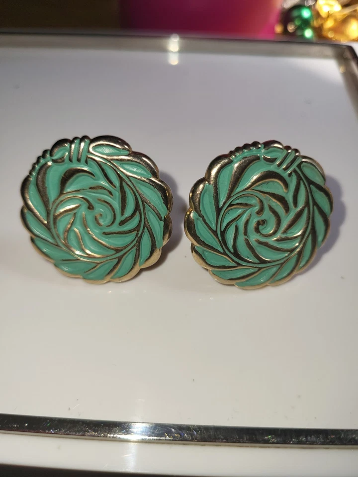 Goldtone And Green Swirl Cufflinks