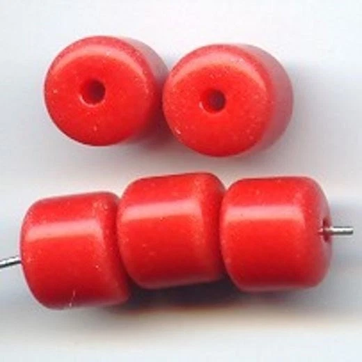 12 VINTAGE CZECH GLASS RED 10mm SMOOTH BARREL BEADS 79