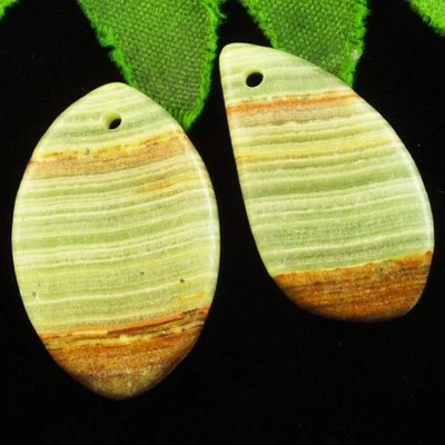 2pcs Yellow Lace Chalcedony Olivary Pendant Bead 30x19x4mm H03253