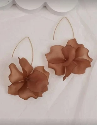 Elegant brown floral hoop earrings. Perfect for any occasion.