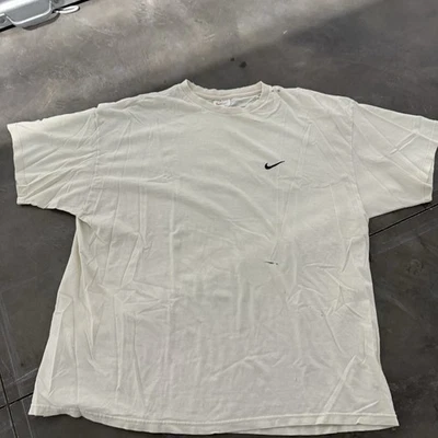 90s Distressed Vintage Nike Cream Swoosh Tee Minimal Pajama Shirt Oversized XXL