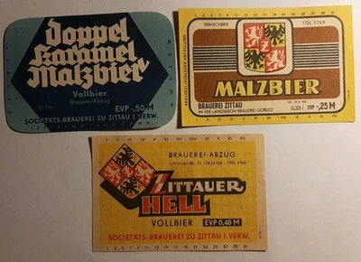 Bieretiketten, DDR Zittau, Doppel-Caramel, Malzbier und Hell