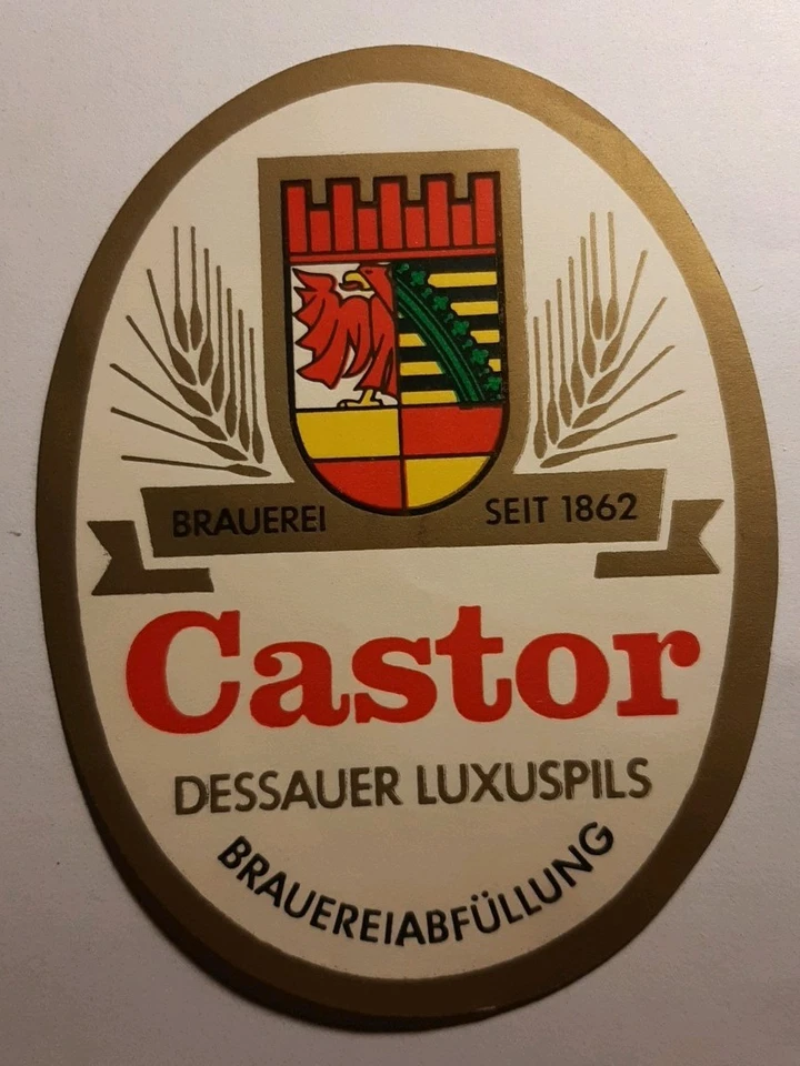 Bieretikett, DDR Dessau, Castor, Luxuspils, Oval