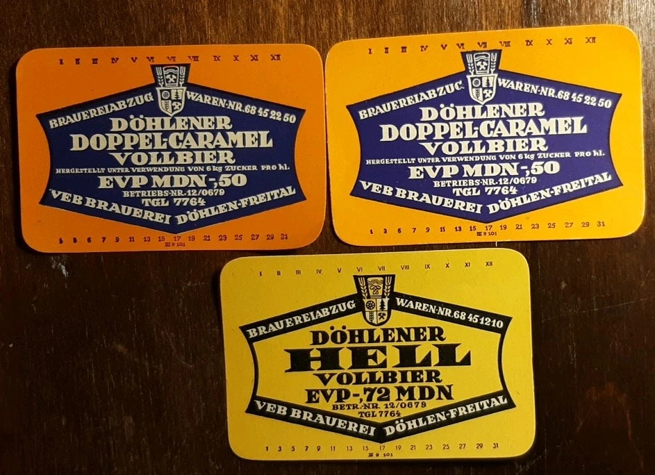 Bieretiketten, DDR, Döhlen-Freital 2x Doppel-Caramel und 1x Hell