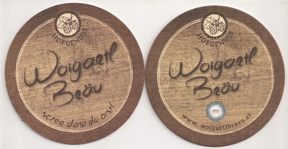 Woigartl Bräu - alter Bierdeckel "Bierregion Innviertel" aus Oberösterreich