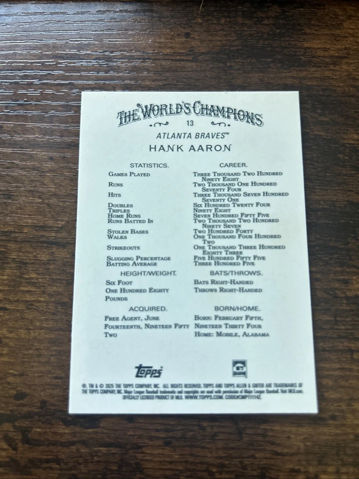 2025 Topps Allen & Ginter - Hank Aaron #13 Silver Portrait
