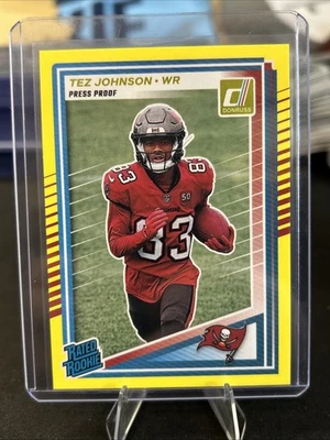 2025 Panini Donruss - Rated Rookie Tez Johnson #313 Press Proof Yellow (RC)