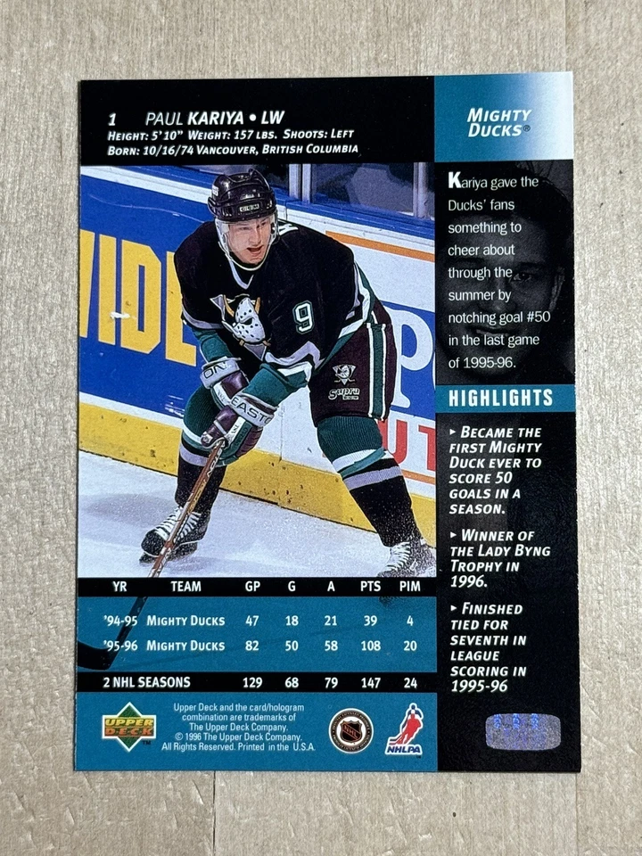 1996-97 The Mighty Ducks Of Anaheim HOF Paul Kariya Upper Deck #1 HOF (2nd Year)