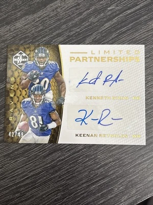 2016 Panini Limited Partnership Dual 42/49 Keenan Reynolds Kenneth Dixon Auto