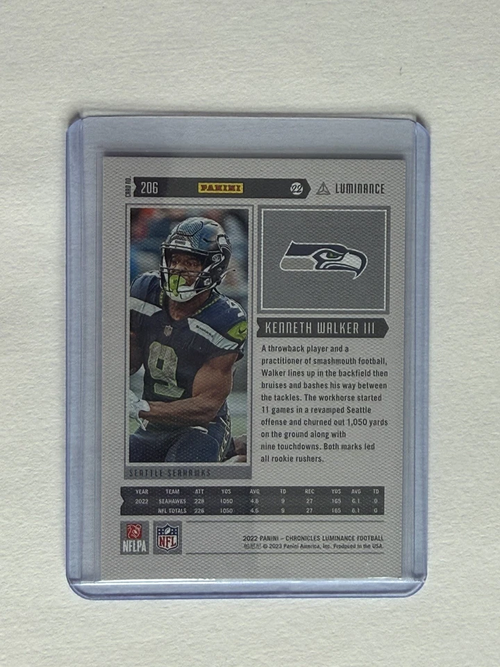🔥 2022 Panini Chronicles Luminance Kenneth Walker III Rookie RC 206 Seahawks 🔥