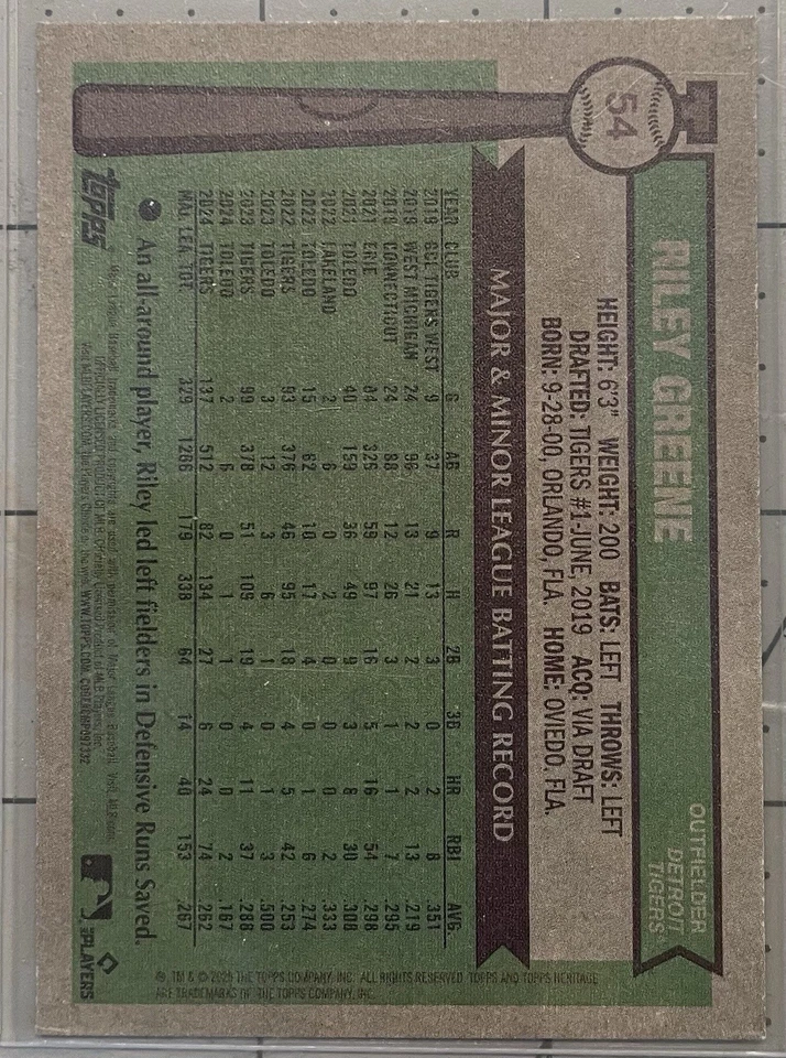 2025 Topps Heritage - Riley Greene #54 Light Purple Border