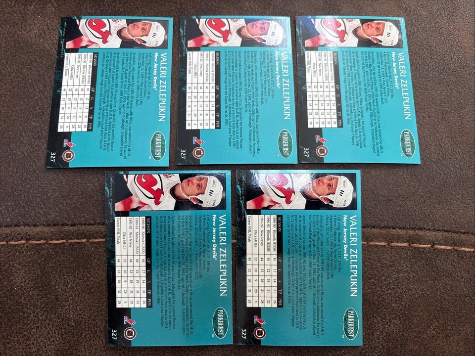 (5) 1992-93 Parkhurst #327 Valeri Zelepukin New Jersey Devils Hockey RC Cards
