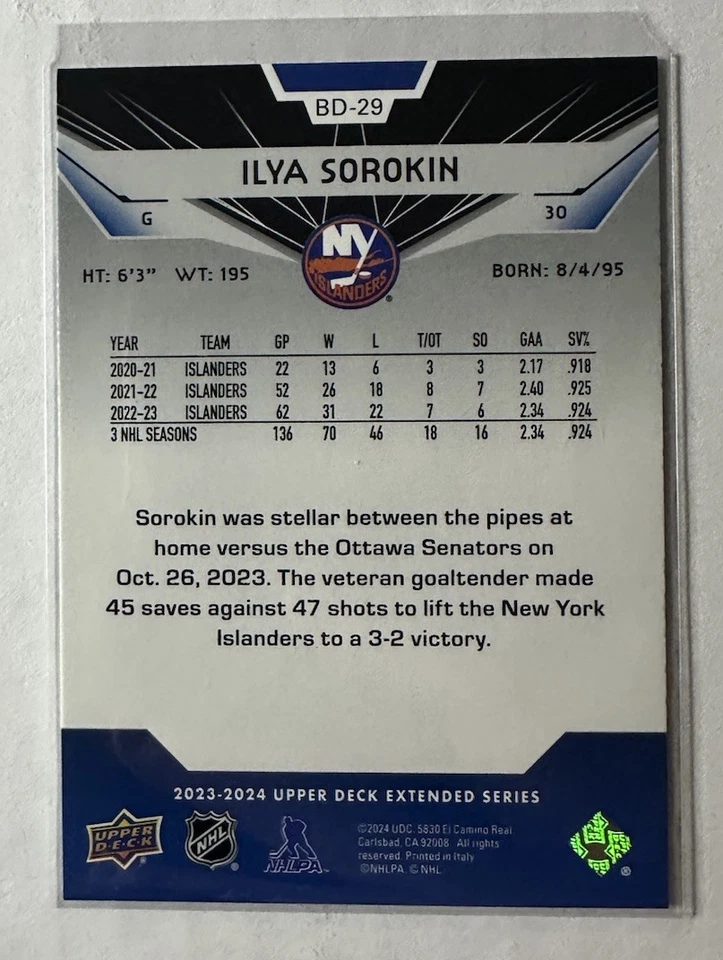 2023-24 Upper Deck Extended Series - 2007-08 Black Diamond Retros Ilya Sorokin