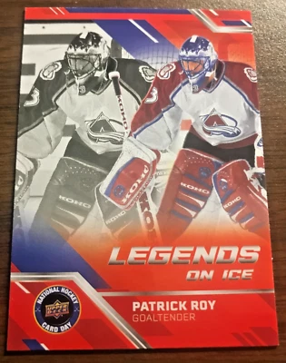2025 UD National Hockey Card Day Legends On Ice card of Patrick Roy (NHCD-28)