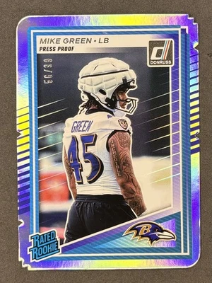 2025 Donruss Mike Green Rated Rookie Press Proof Holo Foil RC #/99 Ravens