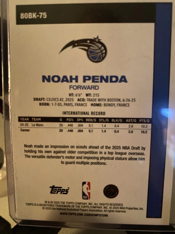 2025-26 Topps - 1980-81 Topps Basketball Noah Penda #80BK-75 (RC)