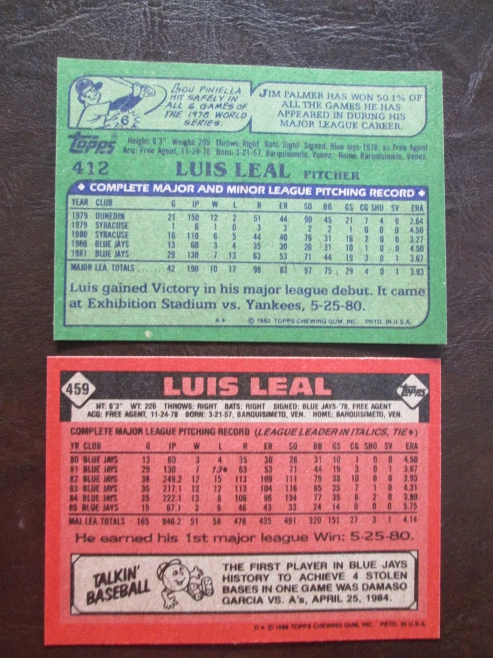 Two Topps Luis Leal Toronto Blue Jays Baseball Cards - See Below