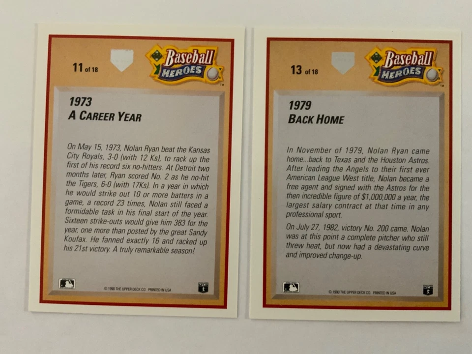 1990 Upper Deck Baseball Heroes #11 &# 13 Nolan Ryan