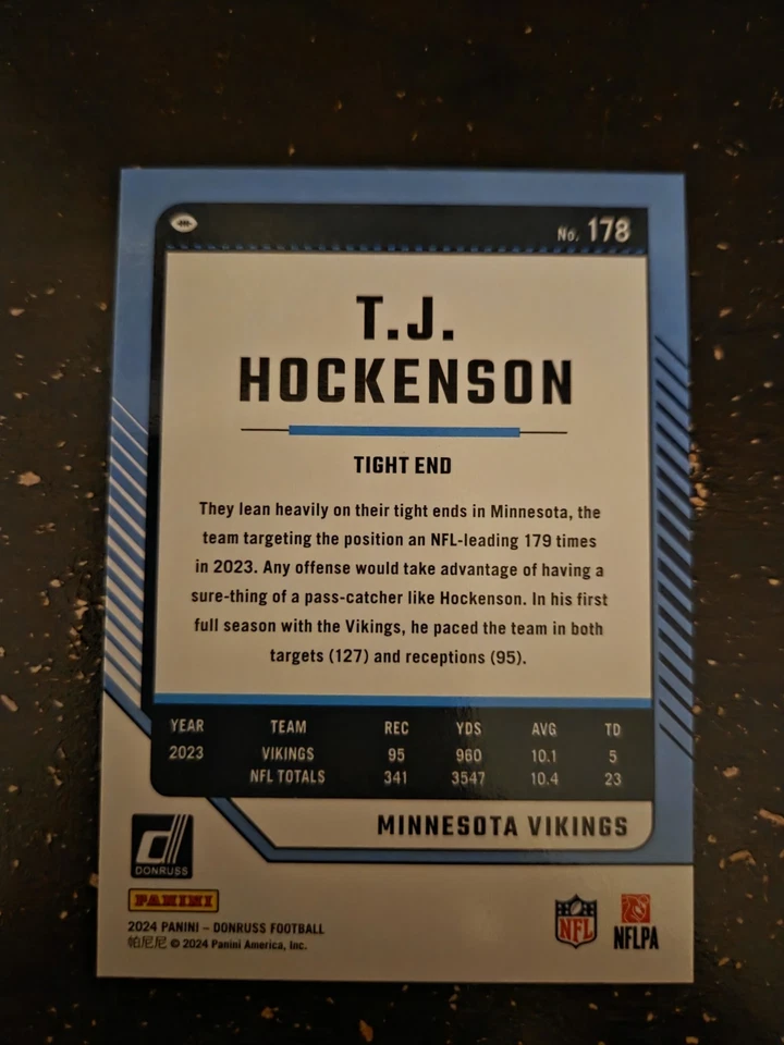2024 Panini Donruss T.J. Hockenson #178 Blue Press Proof (28)