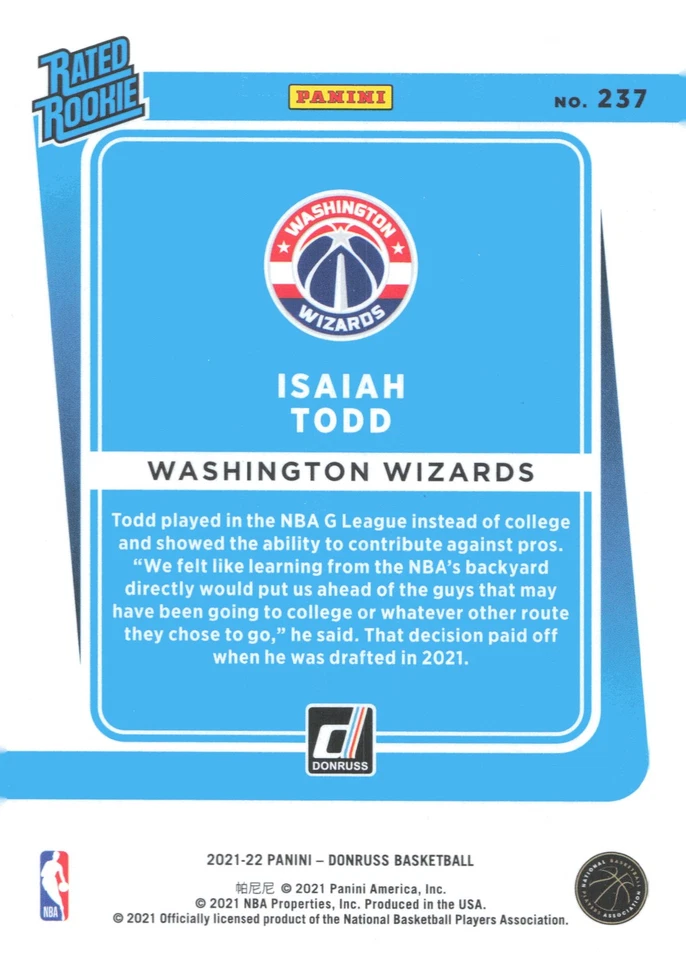 2021-22 Donruss #237 Isaiah Todd