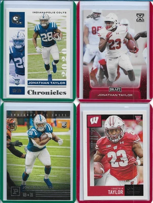 A 4-CARD LOT OF - JONATHAN TAYLOR RC'S (Leaf Dr. Red, Chronicle, Panini & Score)