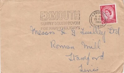 1965 cover sent from Exmouth with cancel Sunny South Devon for Happy Holidays
