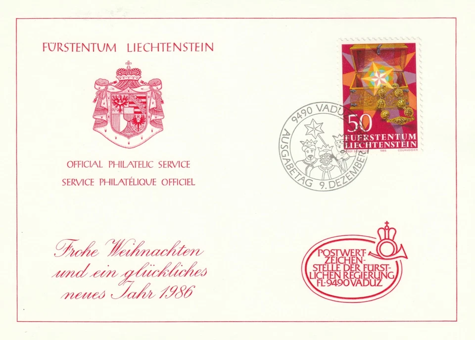 C 301) Liechtenstein 1986 Mi# 855 Gold, Gift: Esst Three Kings, Singers of Stars