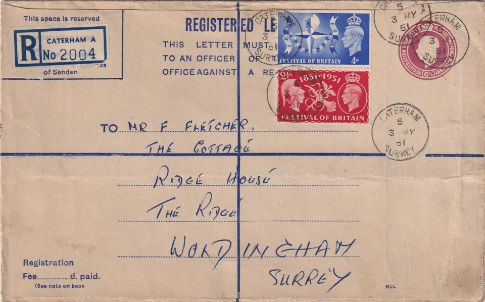 GB 1951 Festival Set (2v) on Postal Stationary, First Day Postmark (p492)