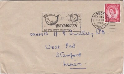 1965 cover sent from Weymouth with cancel Relax at Weymouth on the Sunny South
