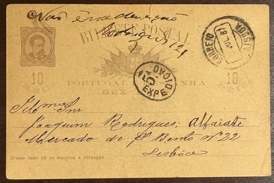 POSTCARD PORTUGAL 10 RICE 1887 STAMPED IN LISBON SEE ORIGINAL PICTURES