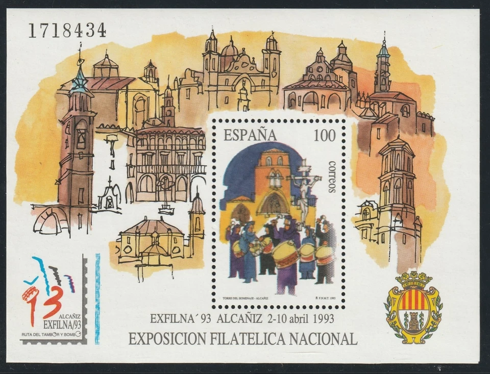 C 307) Spain 1993 Mi# Block 53 **: Alcaniz, Easter Procession Semana Santa, drum