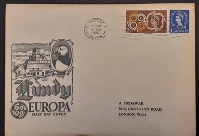 1961 QEII LUNDY local EUROPA CEPT FDC from BARNSTAPLE to London cover puffin