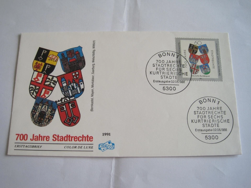 Germany 1991 City Rights 700th anniv stamp on FD cover....q5