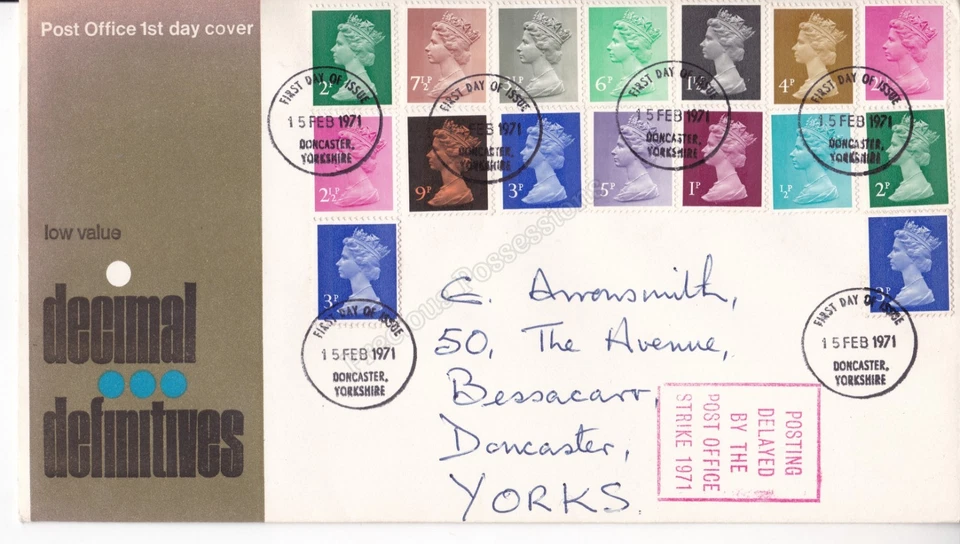 GB FDC FIRST DAY COVER 1971 DECIMAL DEFINITIVES DELAYED BY THE POSTAL STRIKE