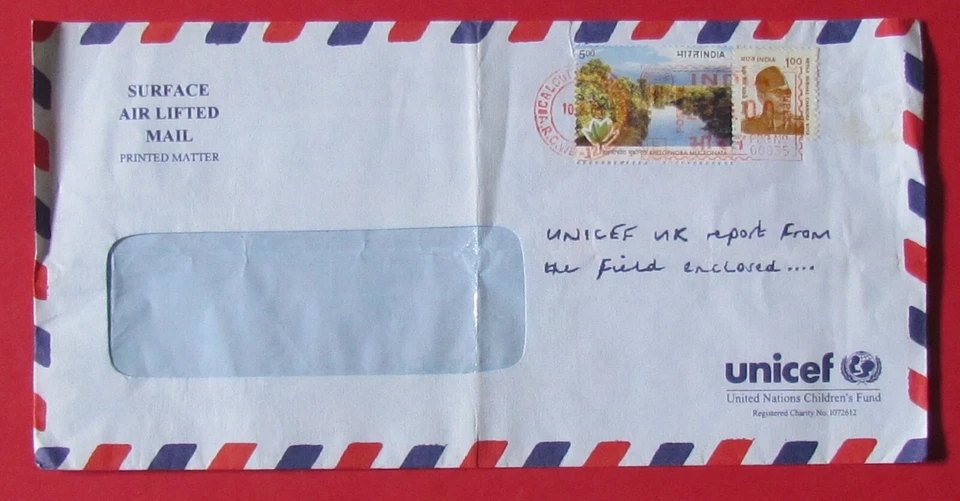 India Postage Stamps on envelop UNICEF