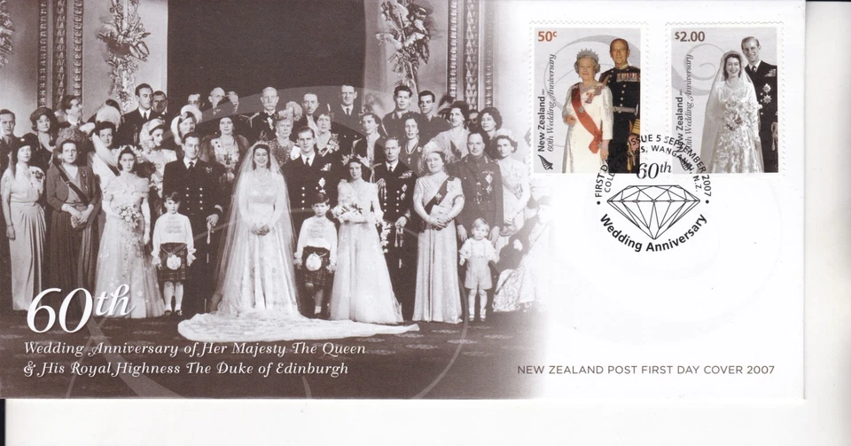 NEW ZEALAND FDC FIRST DAY COVER 2007 60TH WEDDING ANNIVERSARY OF QUEEN ELIZABETH
