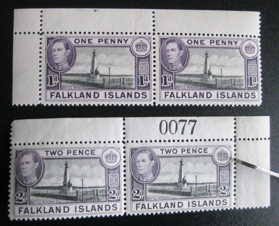 1938 Falkland Islands SG. SG 147b and 150 fresh U/M pairs