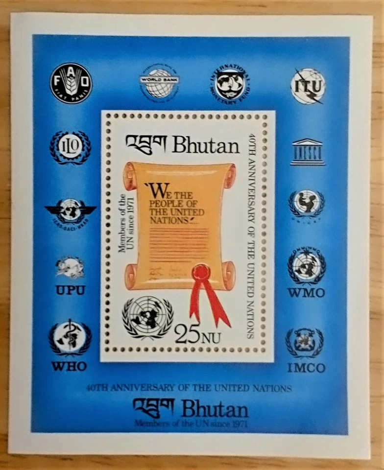 VINTAGE CLASSIC - Bhutan 1985 - United Nations, 40 Years - Souvenir Sheet - MNH