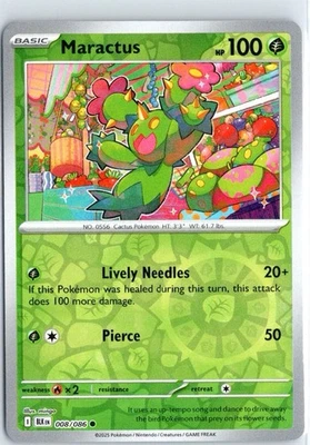 Pokemon Maractus Reverse Holo Common SV: Black Bolt 008/086 NM
