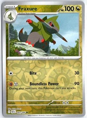 Pokemon Fraxure Reverse Holo Common SV: Black Bolt 069/086 NM