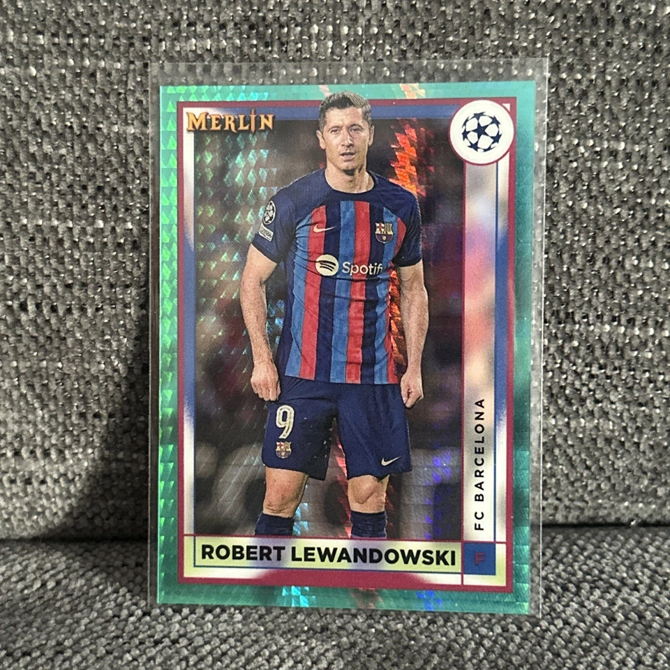 2022-23 Topps Merlin Chrome #53 Robert Lewandowski Barcelona Aqua Prism