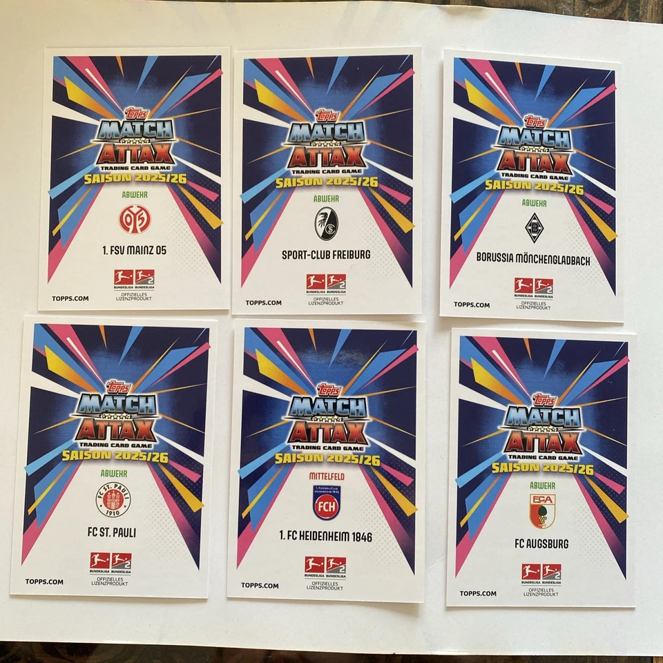 6x Match Attax Karten 2025/2026 Bundesliga 1st Edition